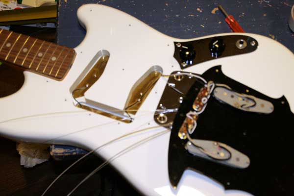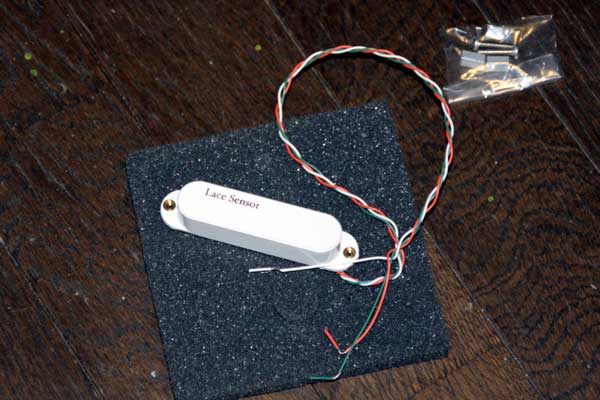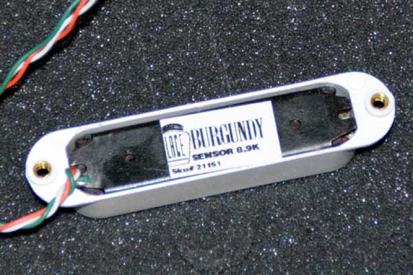 眠れなくなってしまった。 で、何気なくネットみてて、つい「ポチッ」としてしまった。 “レースセンサー バーガンディー”を。 仕事が早いね、サウンドハウス。もう届きました♪ 家に居ながらにして、こんなに気軽に買い物できるってーのは 本当に便利な世の中になったね。 気軽に大きな買い物できる分、少し恐ろしくもあるが。 レースセンサー。ノイズレスがうたい文句の比較的新しいピックアップで、 旧来のボビンにコイルを巻いたのとは違った特殊な構造を持ち、 エリック・クラプトンモデルのストラトキャスターに搭載されて有名になった。 そんなわけで、世間からは「高性能だが出来すぎててなんとなくダサい」という イメージを持たれることもあり、好き嫌いが分かれやすいピックアップだったり します。実は俺もどちらかというと嫌いな方だった(笑)。 マイナスイメージが持たれる要因のひとつとして、アクティブピックアップだと 思われていた点もある。 じつはレースセンサー自体はパッシブピックアップなんだが、 クラプトンモデルのストラトがミッドブースト回路を搭載しており、 電池が必要なギターだったためレースセンサーはアクティブと 思われてしまったらしい。 おれはEMGとかのアクティブピックアップの音が大嫌いでね、 まとまりはいいが人工的で聞いていて気分が悪くなる。 多少ヘタクソに聞こえようが、原音のニュアンスをノイズごと拾ってくれる シングルコイルピックアップの攻撃的な音が大好きなんだ。 アタック感をそのまま伝えることこそ、アナログ楽器の醍醐味というものだ。 レースセンサーもEMGと同類のピックアップなのかと思っていたのだが、 どうも違うらしい。ノイズレスだがパッシブピックアップで音のキャラクターは シングルアップピックアップの物、そして出力が大きいとのこと。 いくつか種類が出ていて、それぞれのモデルに色の名前が付いている。 一番人気はゴールドで、50sビンテージストラトをイメージしたもの。 その次ぐらいに人気があるのがシルバーで、70sストラト的なちょっと 出力のある音。あとは高出力タイプのレッド、ウォームな音のブルーがある。 そして俺が購入したバーガンディーはP90をイメージした音らしい。 それで俺的にはちょっと魅かれれるものがあったのだが、世間的には 人気が無く、楽器店店頭で見かけることはまず無いらしい…。 そういう多少レアなもんでもネットだと簡単に見つけることができてよいね。 しかも値段も安くなってる。 まあ、前置きが長くなりましたが、そんなわけでフェンジャパのムスタングに つけるピックアップの候補としてあがっていたわけですよ。 本命は一番好きなピックアップ P90 だったわけですが、それだと ザグリは必要になるし、ピックガードも作らなきゃいけないしで 結構大掛かりになっちゃう。 それにP90載せてるムスタングは一応すでに持っているわけだし。 まあせっかくだからとりあえず本体の加工なしで交換できるピックアップを 試してみようかなーと思った次第なのです。 前回、「しばらく工作はお預け」なんて書いてしまいましたが、 ピックアップ交換だけならすぐできちゃうなーと思い、 緊急オペを行いました。 まずは箱からレースセンサーを出します。 メイドインUSAだそうです。裏にバーガンディーって書いてありますね。 ピックガードをはずします。さすがはフェンダージャパン。 ザグリがきれい。ハンダ付けもギブソンよりはきれい。 元から付いているピックアップをはずします。こてを当ててハンダを溶かし、 吸い取り線を使いハンダを除去すれば簡単にはずれます。 レースセンサーのコードをハンダ付けします。コードが3本付いてますが、 使うのは白とオレンジ。緑はたぶんタップ用のもの。俺はそんなの使わない。 元の白いコードが付いてたところに白いコードを、黒いコードが付いていたとこに オレンジのコードをつなぎ、ハンダ付けします。 ムスタングなんで、コードの極性間違えてもスイッチで切り替えできるから あまり気にすること無いんだけどね。 ピックガードのねじ止め部分の穴の位置もぴったり! ストラト互換のピックアップはそのままムスタングにつけられるので ラクチンですね!ものによってはザグリ部分の形が合わないものも あるみたいですが、レースセンサーは問題なしです。 というわけであっという間に作業完了。10分少々といったところかな。 出音チェックもバッチリOKでした。 明日(日付的には今日)の練習に持っていって、スタジオで試してみます。 |