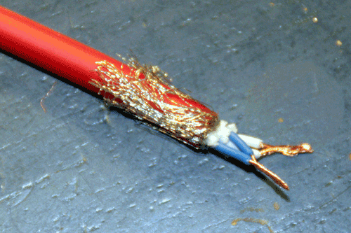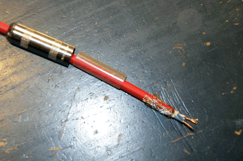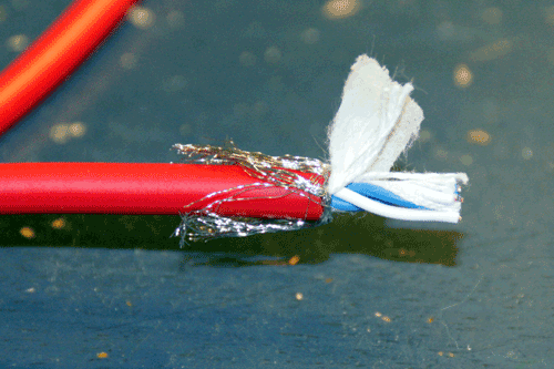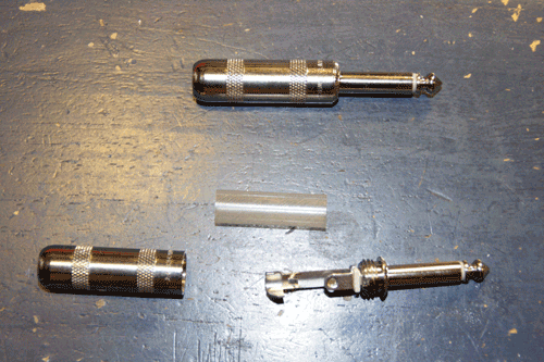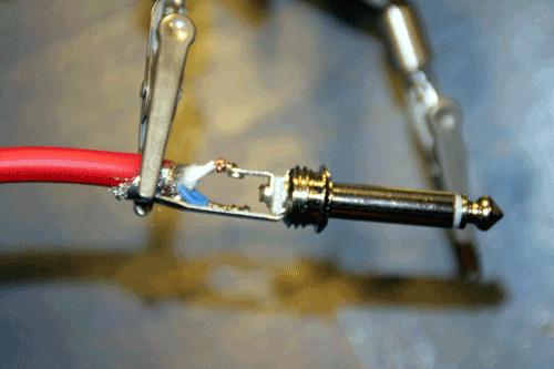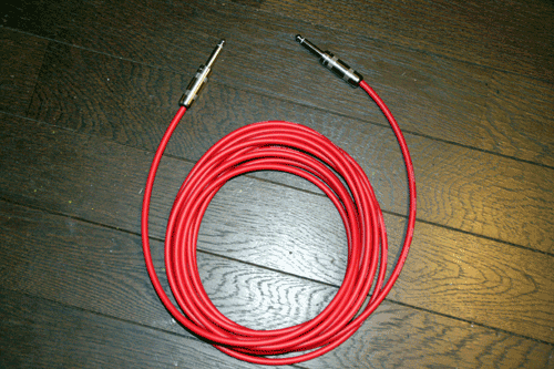 「俺にも作って」とたのまれ、また作ることになりました。 せっかくなので、写真とって作り方を紹介したいと思います。 自作といっても難しいことはありません。材料と道具さえそろえば、テレビに ファミコンつなぐのと同じくらいの難易度です。 材料は秋葉原で入手。駅降りてすぐに「ラジオ会館」っていうオタク向けの お店がひしめき合うビルがあるんですが、そこの2階にTOMOCAっていう 音響関連のお店があります。 一般向けのオーディオ用スピーカーケーブルなんかもあるのですが、 プロ向け機材って感じのケーブルやらマイクやらがたくさん売ってます。 今回購入したのは以下のものです。 国産のケーブル120円/mを7メートル分、スイッチクラフトの モノラルプラグ280円×2の合計1400円なり。 プラグはもっと安い国産のものもあるけど、アメリカ軍でも御用達の スイッチクラフト製はやっぱり挿したときのホールド感が違います。 フェンダーやギブソンなどの有名ギターメーカーはことごとく スイッチクラフトのジャックを採用していますし、おススメです。 ケーブルは高いやつはキリが無いけど、今回買った一番安いやつでもそこらの 市販のシールドよりは品質良いはず。あとこの安いやつは色の種類が豊富で 選べます。今回はシバタさんの要望で赤にしました。前に自分用に作った やつはオレンジです。 えー写真は撮ってませんが、道具はニッパー、ラジオペンチ、半田ごてがあれば 十分です。つけすぎたハンダを取り除く吸い取り線あればなお宜しい。 ニッパーでケーブルのビニール被服をはぎます。ピンボケで見づらいですが、 網状のシールド線が中にあります。こいつが電気的なノイズから音信号を 守ってくれる文字通りシールドなわけです。 シールド線をほぐして剥きます。バナナの皮を剥くように折り返します。 今回買ったケーブルはステレオ用なので4芯です。 ギター用のシールドはモノラルなので2本ずつによります。 ちょうど青2本、白2本なので同じ色同士でよりあわせます。 次に、プラグのカバー部分をはずします。ねじ込み式になっているので まわせば外れます。中に絶縁用のチューブが入っていたのでコレも利用いたします。 先にカバー部分をケーブルに通しておきます。ハンダ付けしたあとに通すのを 忘れていたことに気づくと泣きます。 グランド側の線をくっつける部分にあらかじめ予備ハンダを乗せておきます。 ちなみにハンダは kester 44 というギター用として定番のものを使用してます。 さて、この写真が一番重要なのですが、青い線をグランド側に、白い線をもう一方の電極につないでます。 グランド側の金具にケーブルをはさみ込んで固定する金具が付いているので ここをペンチで締めます。その際、最初に折り返したシールド線を巻き込み、 グランド側にシールド線の電流が流れるようにします。 金具の固定後に、線の部分のハンダ付けをするようにすると楽です。 グランド側の線(写真で青い線)はあらかじめ予備ハンダをしておいて、 半田ごてで押し付けてつけるようにするとやりやすいです。 逆に白い線の方は予備ハンダをやりすぎると線が硬くなって 端子に通し辛くなります。 よった線が解けないよう先っちょをちょっと予備ハンダしてあげて、 端子の穴に通して位置が定まったあとにハンダを流し込むときれいに ハンダ付けできます。 ハンダ付けが終わったらカバーをつけます。ハンダ付けした線が干渉して カバーがしまりづらい場合はラジオペンチで調整しましょう。 反対側も同様に付けて完成!簡単でしょ? 断線したりプラグが折れたシールドも、端っこ切って新しいプラグに付け替えれば 修理できます。市販のシールドは1芯でグランドとシールド線が兼用されてたりして 構造がちょっと違ったりするけど、元のと同じようにつけてやればOK。