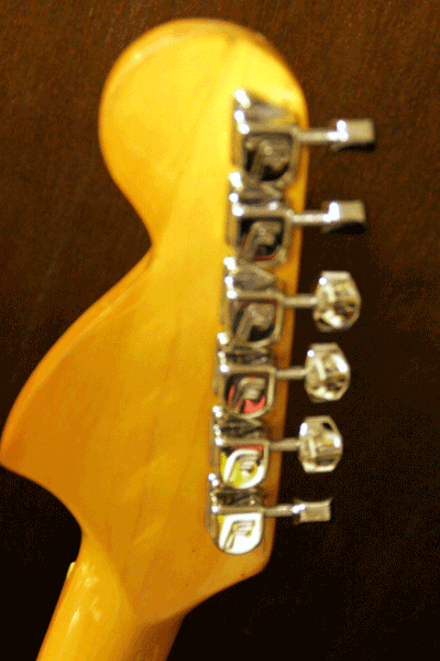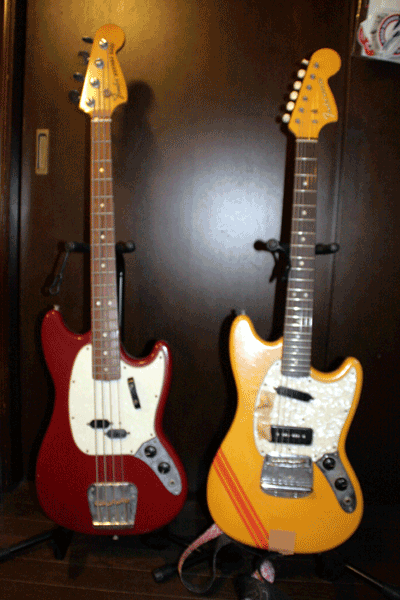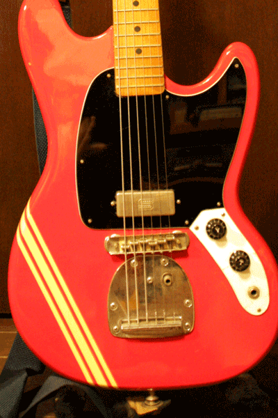 ギターの改造を行っておりました。 今はもう無い、Fresher というメーカーの Mustang コピーモデルです テスコやグヤトーンなんかのビザールギターの時代から、 トーカイ、グレコのジャパンビンテージ時代へ移る、ちょうど 過渡期の製品ではないでしょうか。 フェンダームスタングのコピーなのですが、どこと無くビザールギターの ような胡散臭さが漂う独特の雰囲気。 ピックアップは金属カバー付きのシングルコイルで、結構幅がある見たことの ないタイプ。コントロール部は金属プレートではなく、なんと白いプラ製! ネックは結構ボディよりについていてハイフレットが弾きにくい。 しかもムダに貼りメイプルの指板。 設計した人は確実に実物を見たこと無かったのでしょう。 2・3年ほど前にヤフオクで入手したのですが、前オーナーにより 改造されていました(元のパーツも付いてきましたが)。 少しでもフェンダーのデザインに近づけようとしたのか、 ピックガードは白いものに、コントロールが付くパネルは 金属プレートに換えられていました。 しかしギター自体の個性を活かした方が良いと思い、あえてオリジナルの外観を 尊重する方向で、そして自分好みの音が出せるように改造することにしました! コントロール部はオリジナルの白いプラ製のものに戻し、 ピックガードもオリジナルのイメージで黒のものを自作。 ピックアップはダンカンのミニハムを採用。 コンデンサーはオレンジドロップに交換しています。 ペグも新品に交換しましたfチューナーがやっぱかっこええと思うのですが、 フェンダーのだとなんか違う!と思ってあえてフェルナンデスの fチューナーをつけました。Fが大文字で角ばってます。 じつはこの改造、だいぶ前にやりかけて途中で放置していたもので (ずっと仕事が忙しかったからね~泣)、今回やったのは自作ピックガードの 仕上げとペグの交換部分です。 ピックガードにピックアップ取り付け部分の穴を空けたのですが、 この間落札した電動糸ノコが大活躍!ラクチンラクチン!! 形を出すときはまだ糸ノコなかったのでドリルを使って切り出し (切手の切れ目みたいな感じ)、棒ヤスリで整えたのですが、 ヤスリがけ超大変だった!このやり方は二度とやらない。 先月落札したフェンジャパのMG65とツーショット。これもそのうち改造するつもり。 P90載せたいけどダンカンのシングルサイズのハムとか、レースセンサーの バーガンディーも気になってます。 しかし、改造するのはしばらく先になるけどね~。 工作はしばらくお休みして、曲作りとかを優先しようと思ってます。 ついでに69年製コンペティションオレンジと65年製(たぶん)のムスタングベース。 こいつらは本物です。けっしてBeckモデルじゃありませんっ。 コンペティションは一応おいらのメインギター。最近ジュニアの使用が多いけど。 リアにP90のせてますが、改造はお店でやってもらいました。 っていうか、どんだけムスタング好きやねん! PR